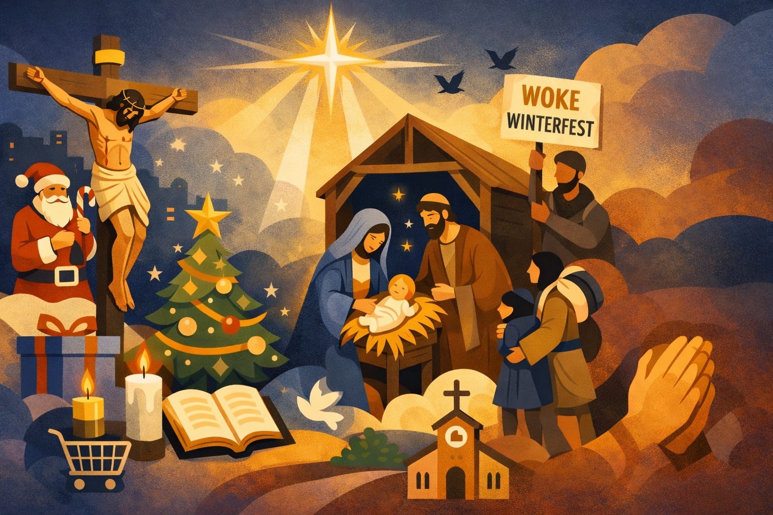 Want van wie is Kerst eigenlijk? Is het een christelijk feest dat tegen de duistere krachten van de oprukkende woke winterfeestvierders beschermd moet worden (valt reuze mee)? Of is het van de vluchtelingen (Jezus moest ook asiel aanvragen in Egypte). En natuurlijk laait de strijd tussen Kerstman en Kerstkind ook weer een beetje op.